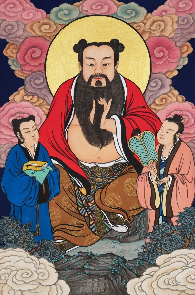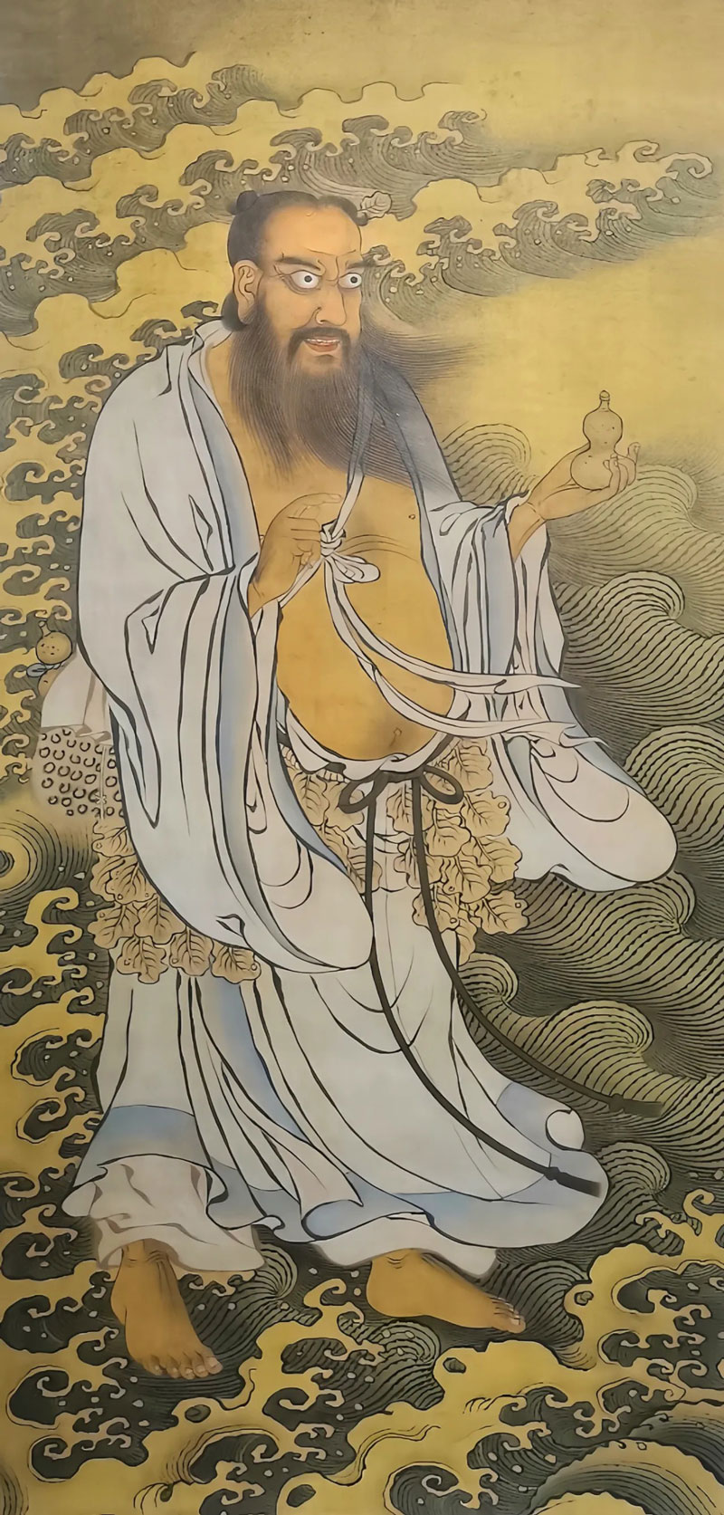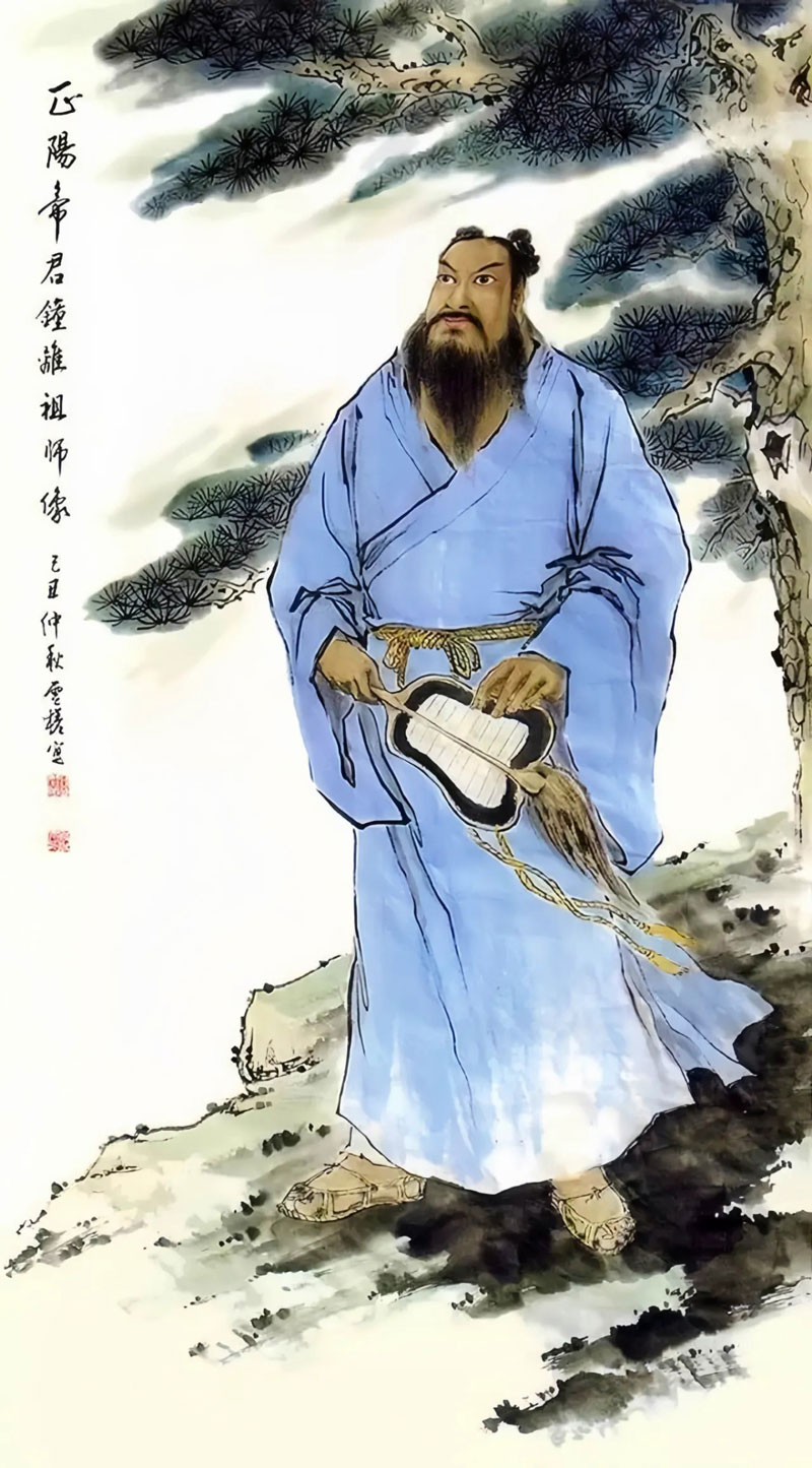 据传,钟离祖师少工文学,尤喜草圣,面容慈善,身材魁梧,贯文通武,长八尺七寸,须髯过腹,目含神光,仕汉为将军,出兵不利,隐遁终南山,遇东华帝君授以道法。